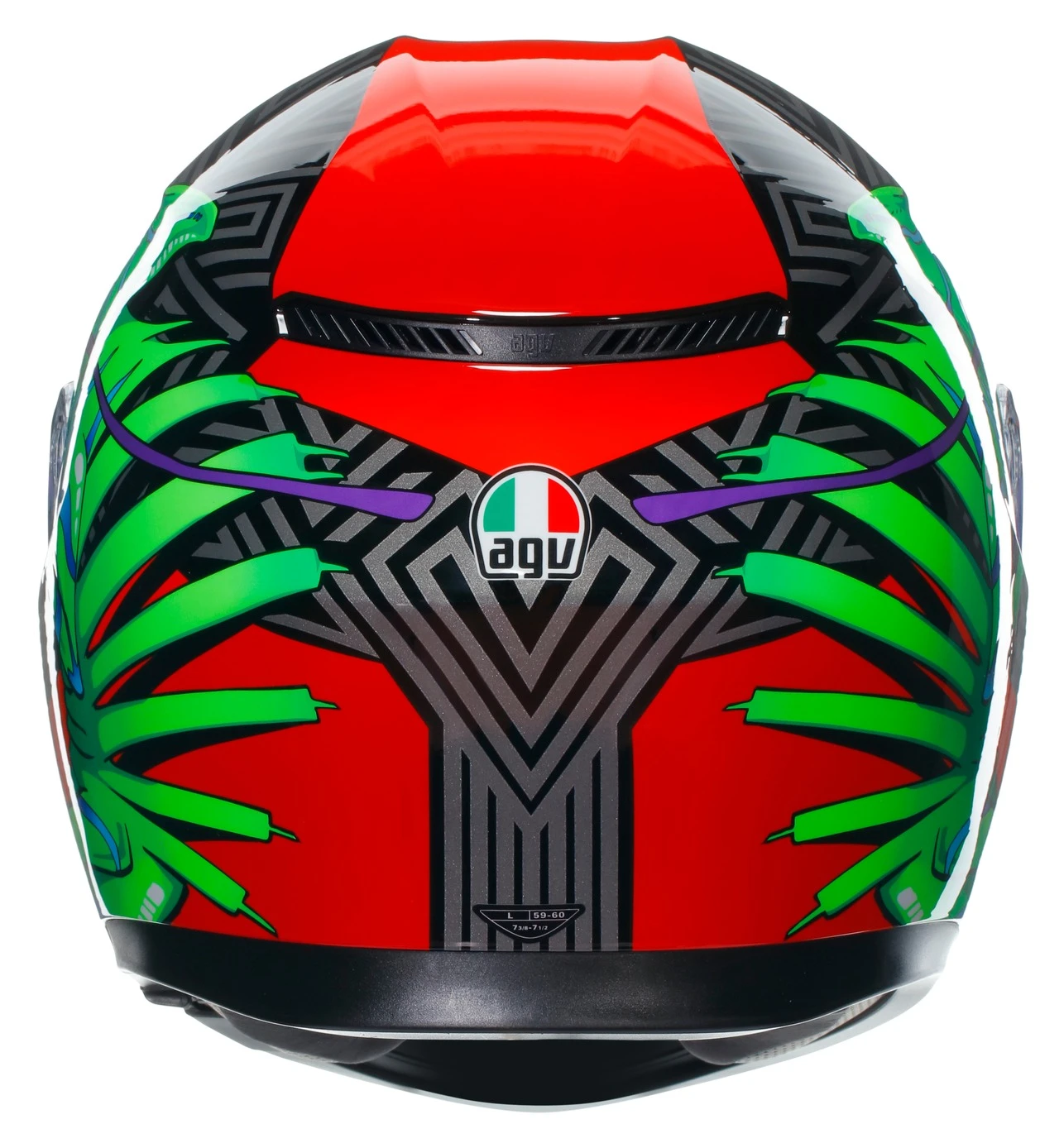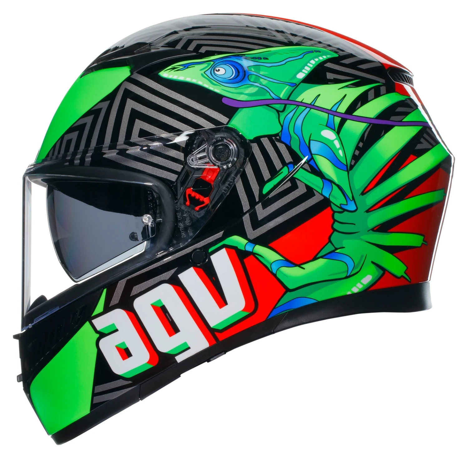 In AGV’s constant pursuit of perfection, they’ve elevated the already iconic K3 helmet to a whole new level of performance. The aggressively styled shell is designed to maximize aerodynamic performance and optimized for stability in all riding positions, so you’ll slice through the air with ease no matter how you ride. With a massive field of view, anti-fog Pinlock lens equipped face shield and drop down sun shield you’ll be able to keep your eyes on the road ahead with ease in any weather condition. The plush, quick-drying and thoughtfully constructed interior is available in three shell sizes to help you get the best possible fit. The K3 from AGV is a shining example of premium comfort and top level safety packaged in a sleek and affordable package.
