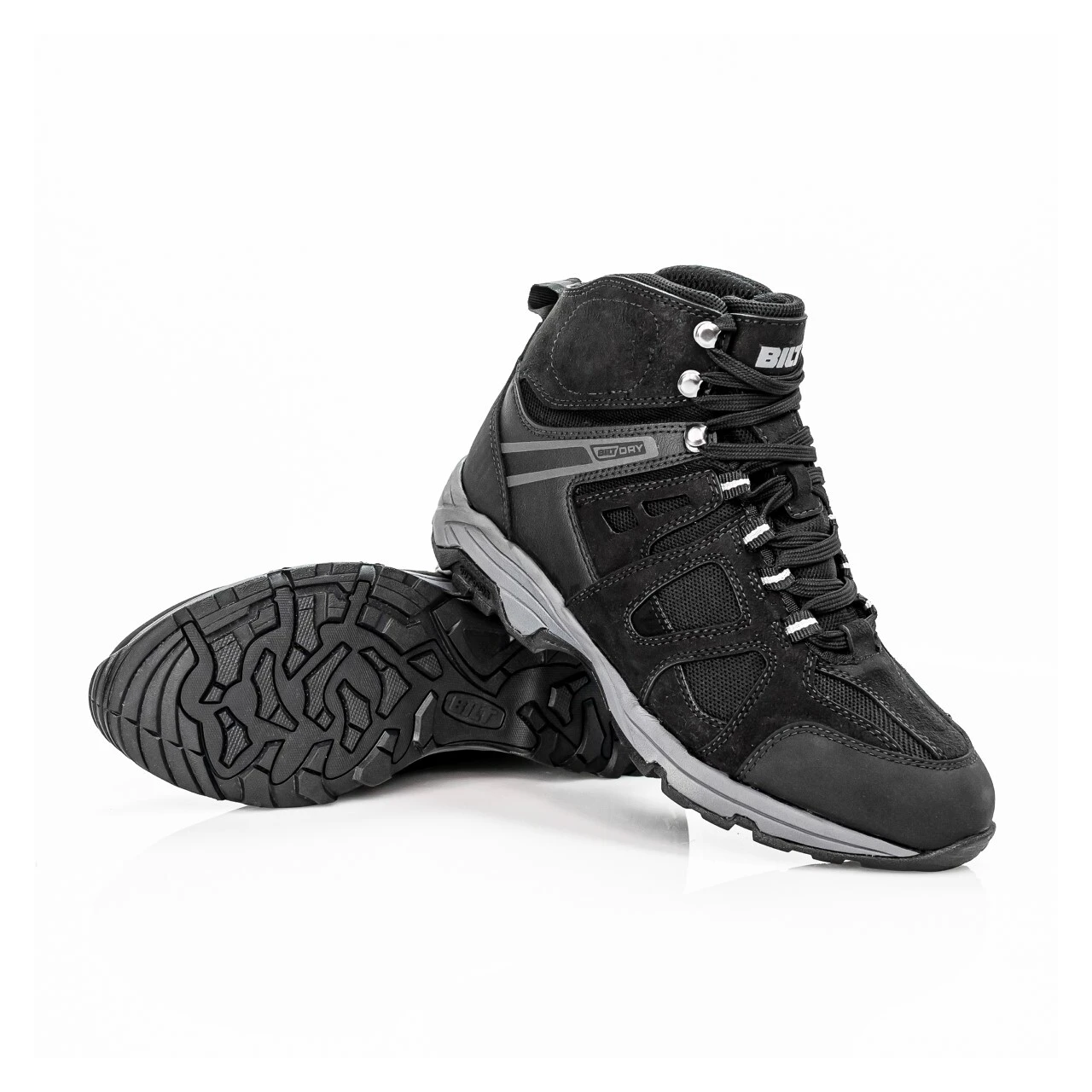 The BILT Canyon Waterproof Boots are a great everyday boot that can do anything you need. Constructed from an amara suede with microfiber upper with mesh inserts and a moisture wicking mesh liner keep feet cool while a waterproof breathable membrane keeps the water out. Full length shock absorbing midsole and non-marking lug outsole pair for better traction on and off the bike. Flat laces and nylon webbing lace guides prevent laces from getting caught in controls.