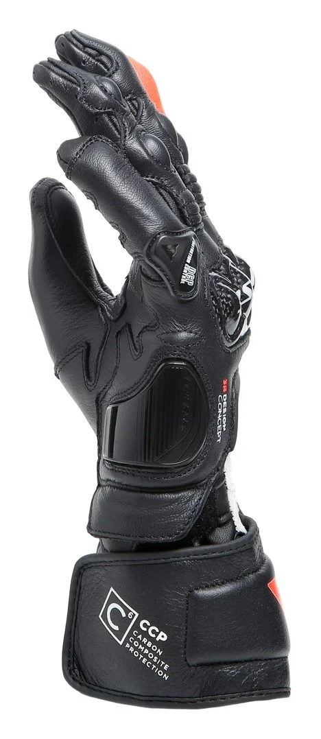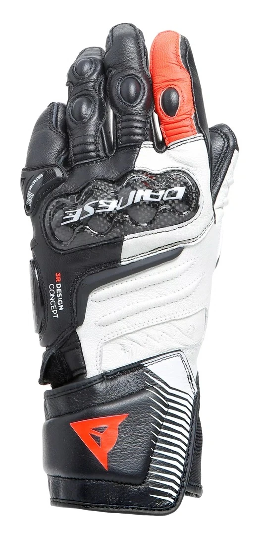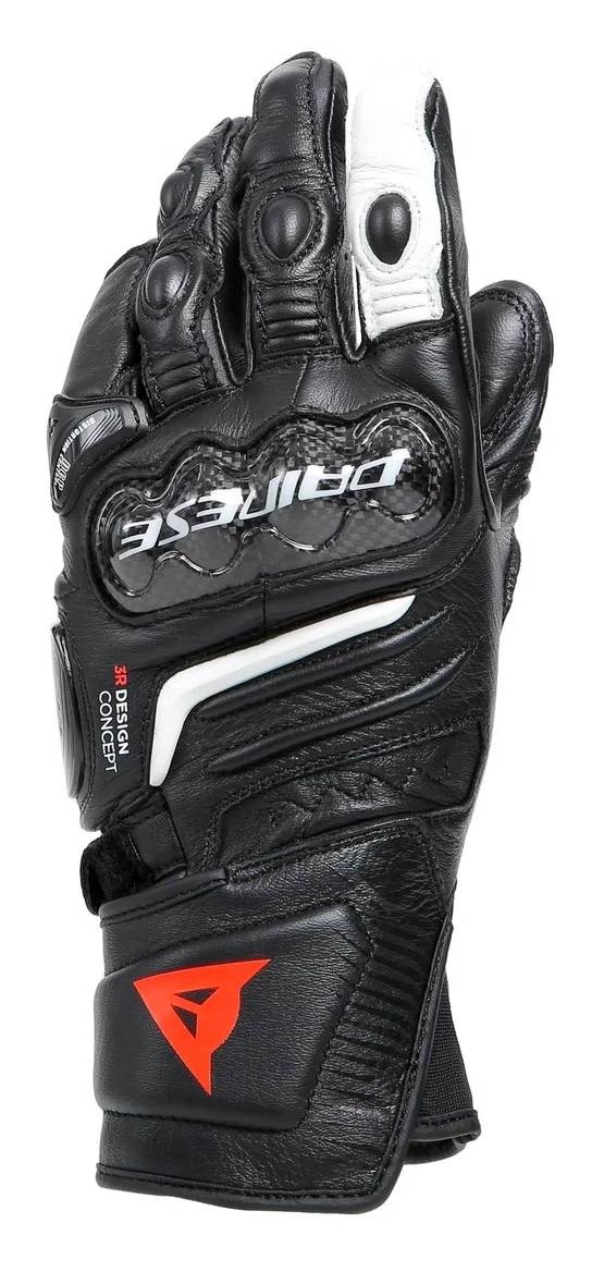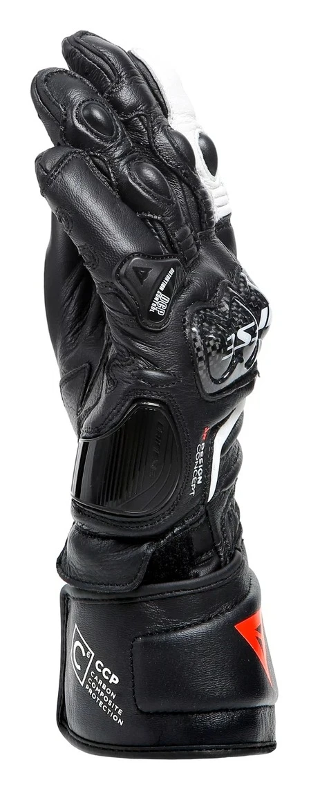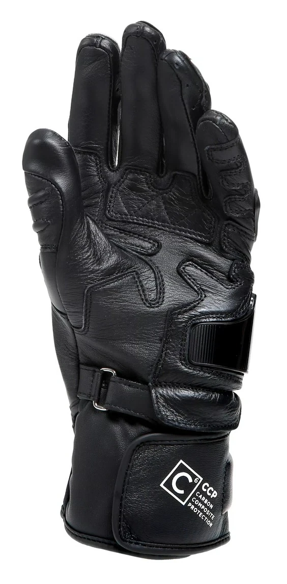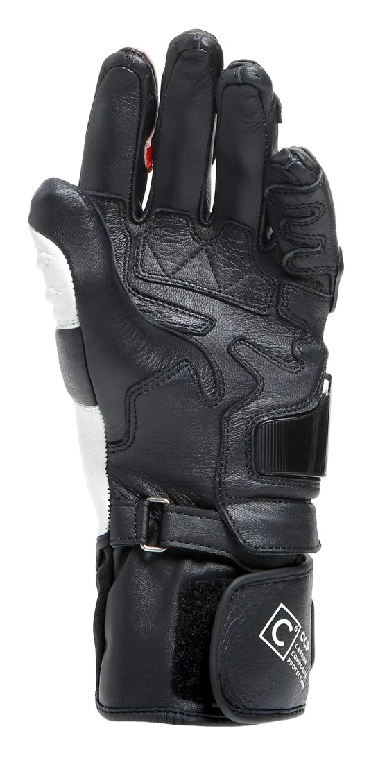 The Dainese Carbon 4 Gloves are a full gauntlet riding glove that balances everyday street comfort with features and design from the racetrack. As the name implies, a prominent carbon fiber knuckle guard across the back of the hand anchors the look. Leather reinforced impact zones, distortion control on the fourth finger and polyurethane sliders bring top tier safety tech to a glove that is tuned ergonomically for the street. When the road beckons, the Carbon 4 Gloves deliver.