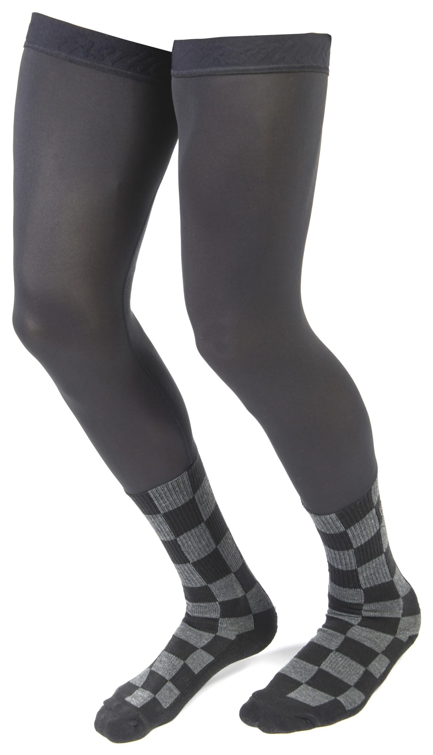 The Fasthouse Elrod Legacy Knee Brace Socks are mid-thigh length with an elastic thigh band to keep them in place under your knee braces.