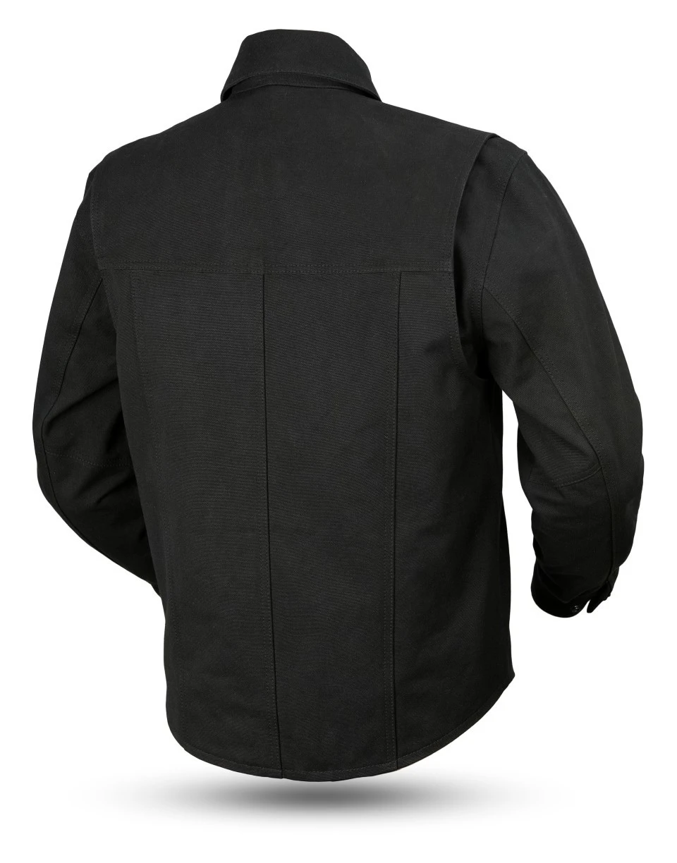 The Mercer Jacket from First Manufacturing is a heavy duty canvas riding shirt with clean and minimal styling. Reminiscent of the southern California bike scene, the Mercer is the perfect jacket for those who prefer to keep things simple. Although it lacks abrasion resistance and armor pockets, the Mercer makes an ideal shell for an armored shirt or vest.