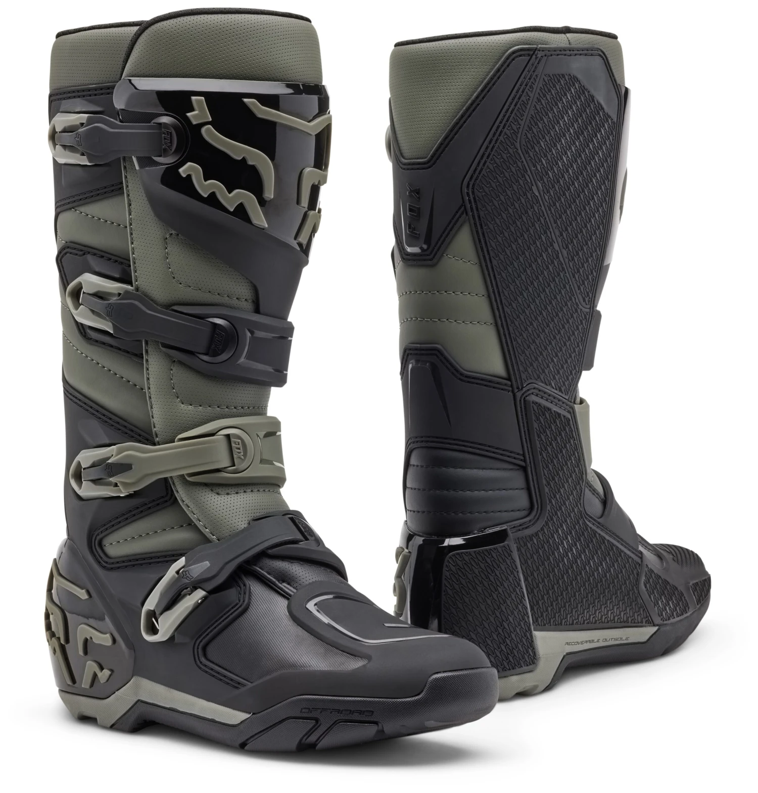 The Fox Racing Comp X Boots offer all of the benefits of the Comp Boots with additional traction for riding in rough conditions. The Comp X Boots have instant step-in comfort so you can spend more time shredding and less time breaking in your boots. An exclusive Fox Positac rubber compound outsole, as well as burn and calf guards, provide remarkable grip and feel on the bike and excellent durability. Utilizing an adjustable four buckle closure system, the Comp Boot also offers a comfortable, secure fit over the top of the foot. Additionally, TPU shin plates, ankle, toe and heel caps provide additional protection.