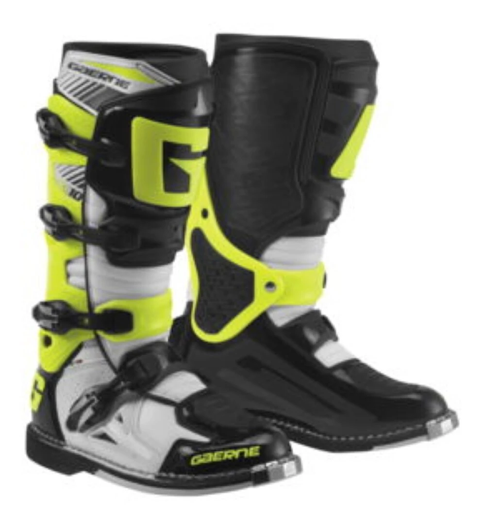 The Gaerne SG-10 boots give off road riders superior protection with a less expensive price tag. The Razorback pivot system provides side-to-side and front-to-back mobility and exceptional protection to avoid ankle twisting. An adjustable buckle system gives the ability for expansion of up to a 21 inch circumference so the SG-10 can fit most types of riders. Grip guard technology, which is exclusively offered by Gaerne, gives riders a tighter grip on the bike with extra protection against heat. On the inside, a memory foam interior liner keeps feet comfortable while a dual composite rubber sole lessens vibrations.