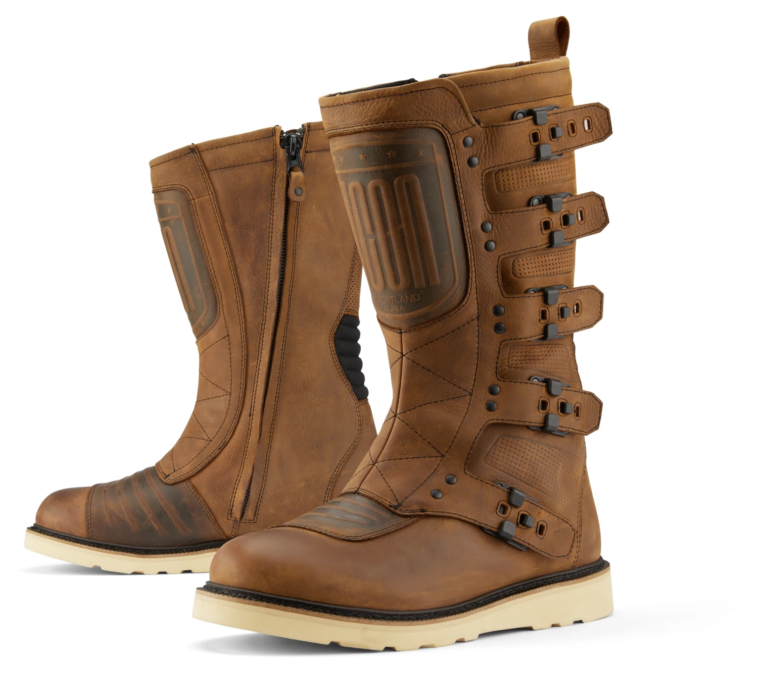 Icon has done it again! They’ve re-re-introduced the uh . . . iconic Elsinore boots– but now with a CE rating! The Icon Elsinore 2 CE Boots bring you the same upgrades over the original, but now with proper safety credentials. Reinforced shin armor and tough nylon buckles will survive bumps, bruises, spills, and thrills. Internal D3O ankle inserts add even more protection without increasing bulk. Despite their impressive overall rigidity, the Elsinore 2 CE Boots are impressively comfortable with cushioned foam insoles. To complete the package, a high quality leather upper is coupled with oil and slip-resistant outsoles to lend both style and security.