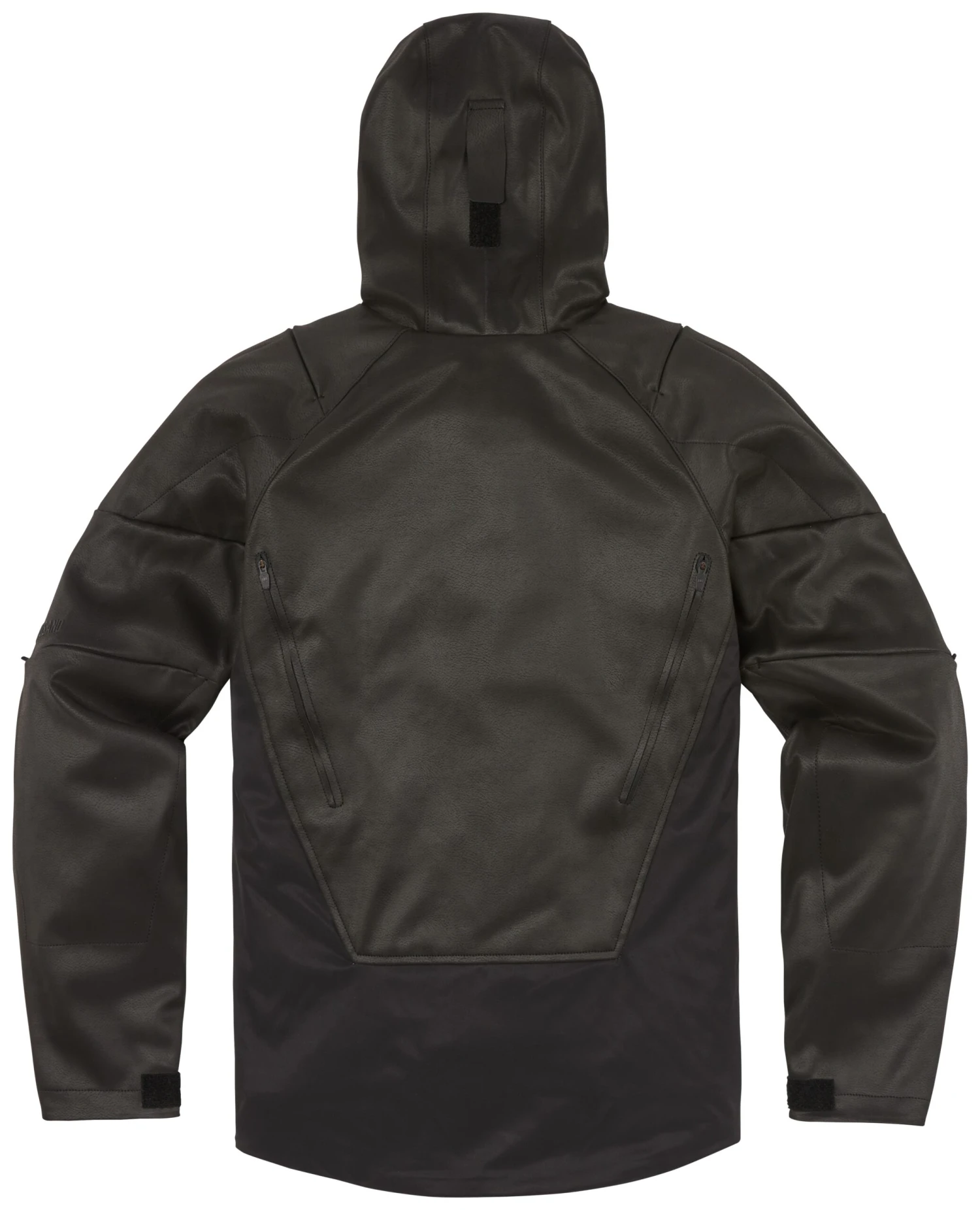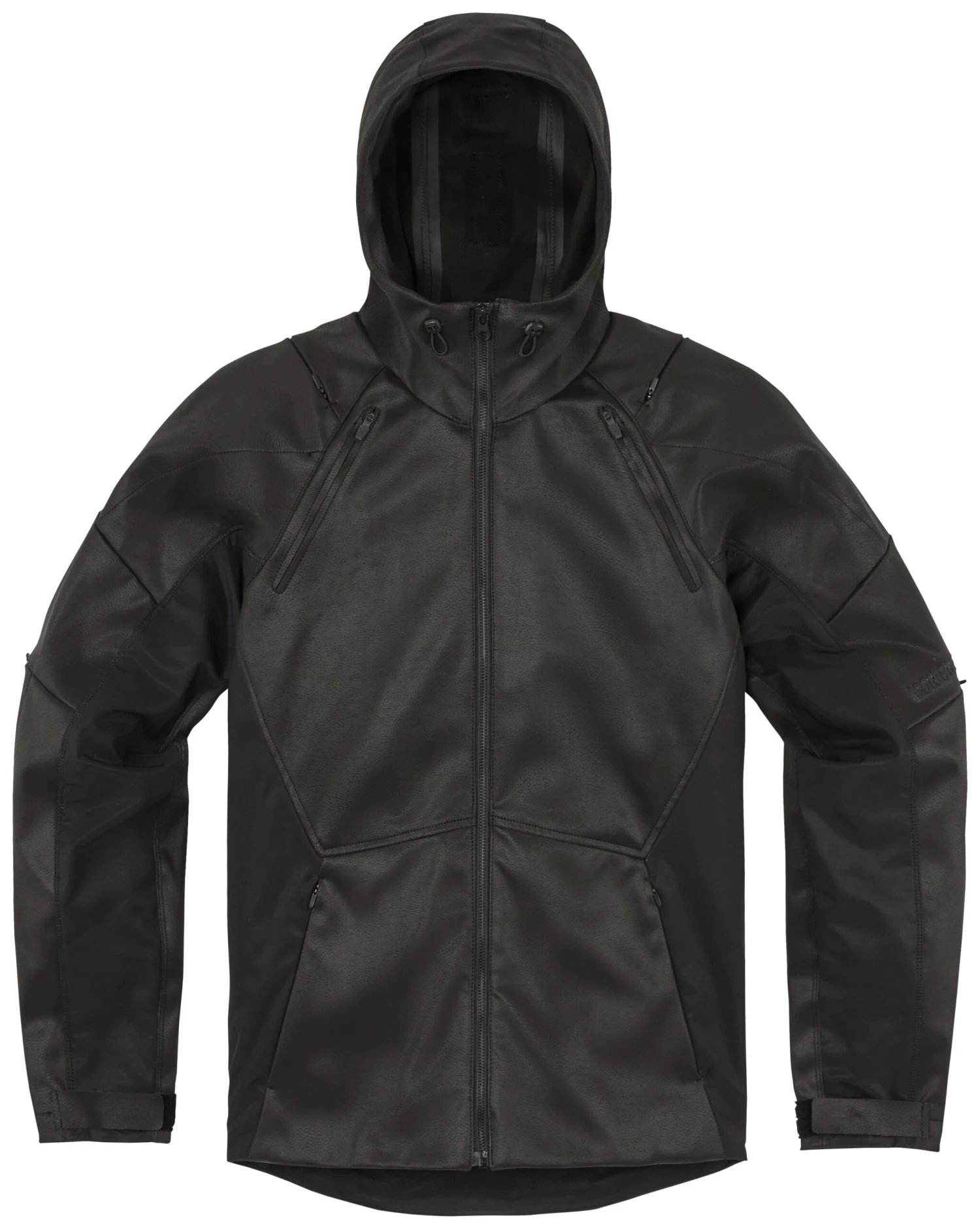 All the performance of leather but half the weight, the Icon Synthhawk Jacket is next-gen riding apparel for future-focused pilots. The Ax Suede engineered synthetic chassis is internally reinforced with 300d polyester in the elbow and shoulders. Fitted with D30 CE certified removable back, elbow, and shoulder impact protectors, the Icon Synthhawk has an inconspicuous style but is every bit a certified motorcycle jacket. On hot summer riding days, open the chest, cuff, and back vents for on-demand airflow. For even more airflow, deploy the AirFly center front mesh panel for maximum cooling. The rollable hood storage and adjustable waist drawcord eliminate high-speed wind flap.
