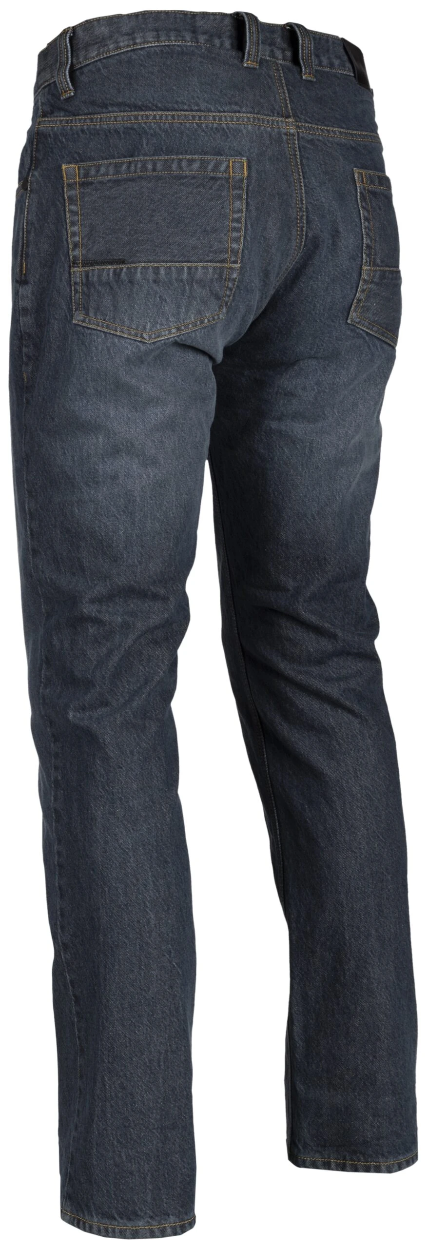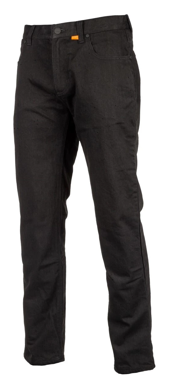 Klim K Fifty 2 Jeans deliver abrasion resistance, impact coverage and style. Heavy duty Cordura denim is backed by DuPont™ Kevlar® panels to keep the pavement from coming through. D3O EVO knee and hip armor provide CE level impact protection rounded out by Poron XRDA at the tailbone. All these protective features are cleverly hidden within the pant. The Klim K Fifty 2 jeans lack any telling seam on the outside of the pants that would hint that these jeans are designed to protect motorcyclists.