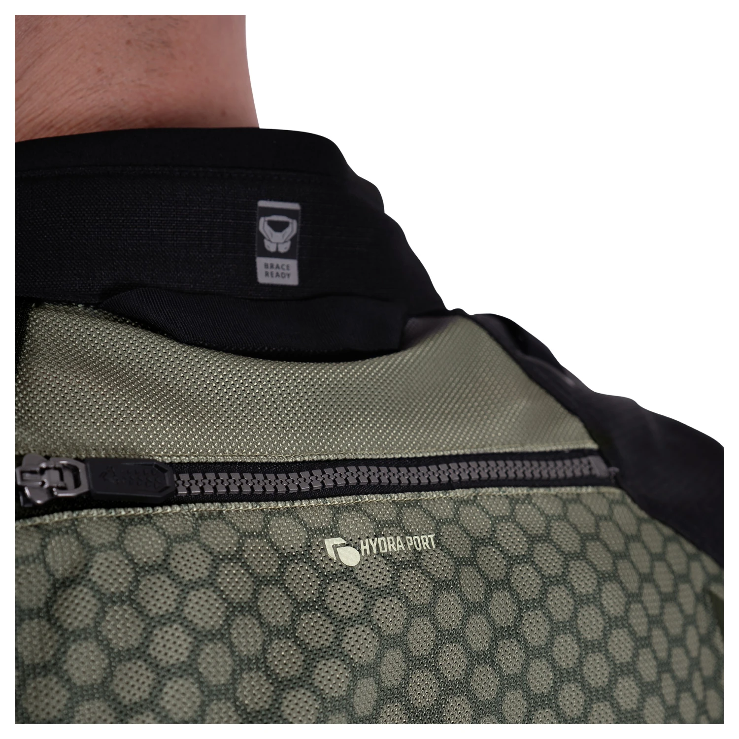 The ADV FlowTour 5.5 is a ventilated jacket designed for comfort and protection. With the added versatility of a waterproof outer layer, it is ideal for riders who require adaptability and protection in varying weather conditions. The jacket is constructed from rip-stop material, ensuring durability and resistance to wear and tear. Large X-Flow mesh panels provide exceptional ventilation, keeping you cool during even the most intense rides. Perfect for wet conditions, the jacket includes a HydraDri® waterproof over-jacket that can be worn over the main shell or as a separate waterproof jacket, offering excellent versatility. The jacket features 3DF Level 2 protectors for the back, elbows, and shoulders, with the option for an additional chest protector for proper impact protection.