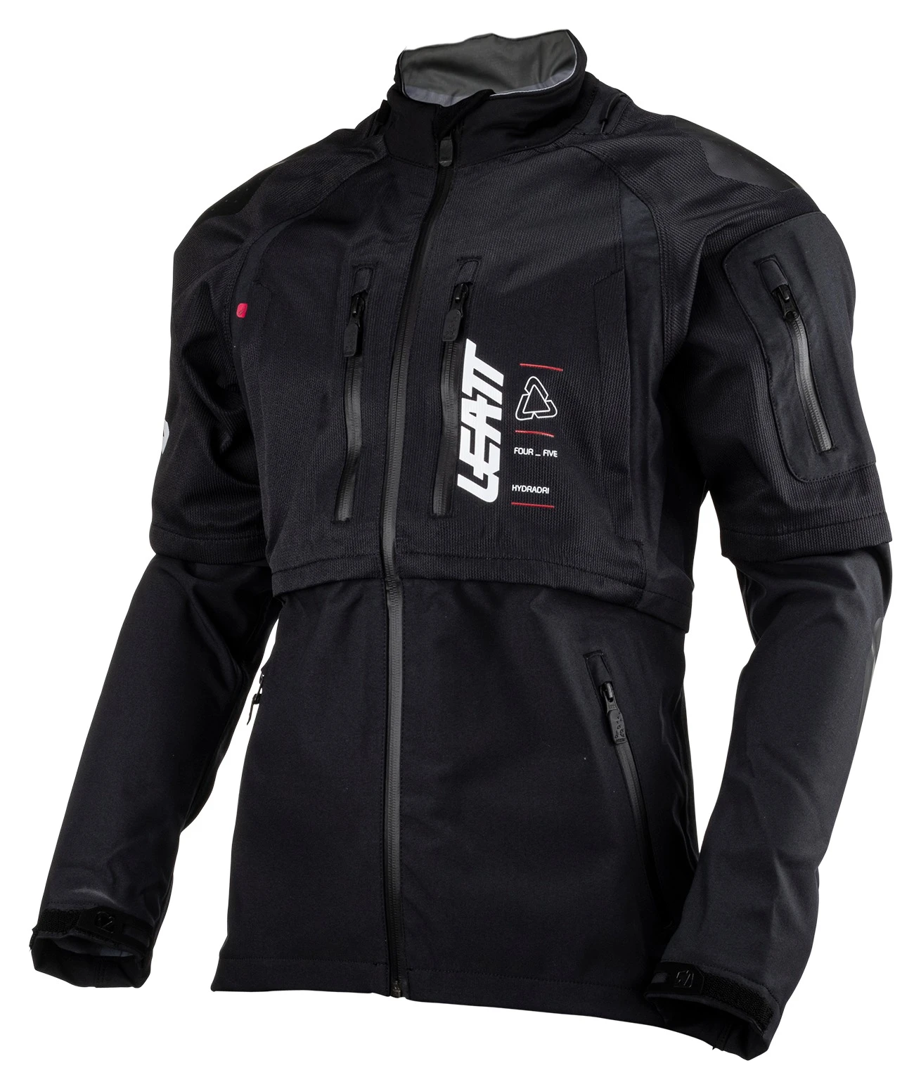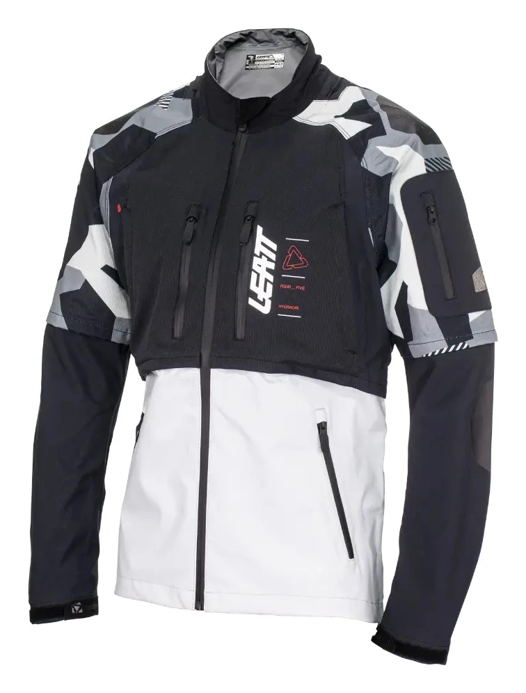 The Leatt Moto 4.5 HydraDri Jacket will keep you dry on those wettest of rides in the worst of conditions. The 3-layer waterproof membrane is bonded to the inside of the jacket which is perfect for heavy rain and wet snow. As well as not allowing water in, this clever material allows moisture from your body to be expelled to help keep you cool. If the sun should make an appearance there are ventilation zips in the front and back. There are 5 storage pockets using YKK zippers and adjustment in the waist, neck and wrist. The tailored waist length fit is designed to work with or without body armor and the collar can accommodate a Leatt neck brace if worn.