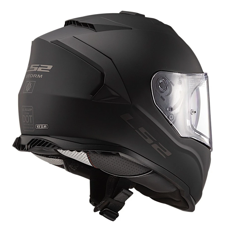 LS2 assaults the competition with the class-leading Assault Helmet. The Assault shell is constructed from LS2’s Kinetic Polymer Alloy (KPA), a lightweight strong composite material, and is paired with a multi-density EPS liner into three shell sizes. The interior comfort liner uses a high-tech fabric that wicks moisture, dries quickly and is fully removable and washable. The comfort pads are pre-curved using LS2’s 3D laser technology for all-day comfort and no hot spots. Large, adjustable vents on the chin bar and at the top of the helmet work in conjunction with the rear spoiler and side venturi vents to offer adjustable, dynamic flow-through ventilation. The eye port is wide and houses an optically correct face shield with pinlock anti-fog lens included.