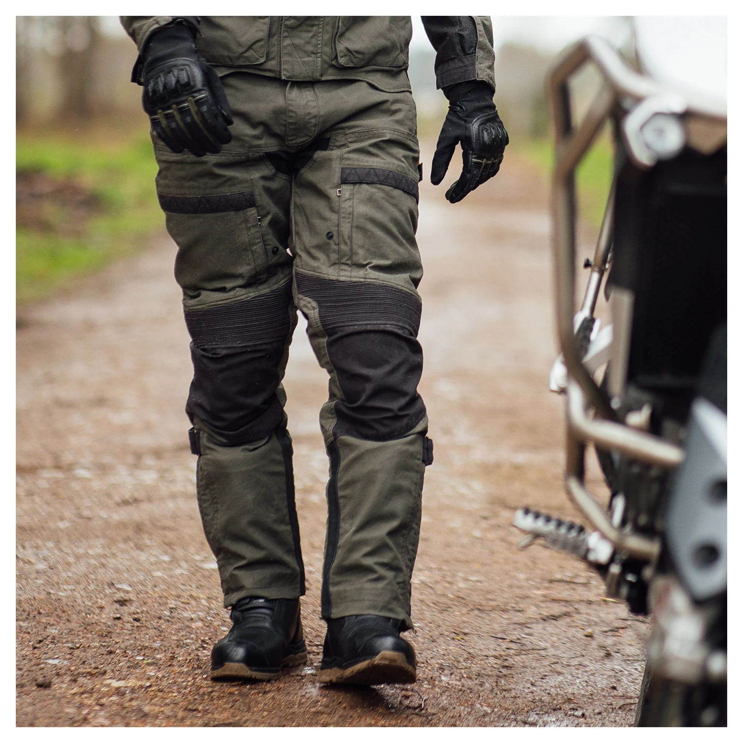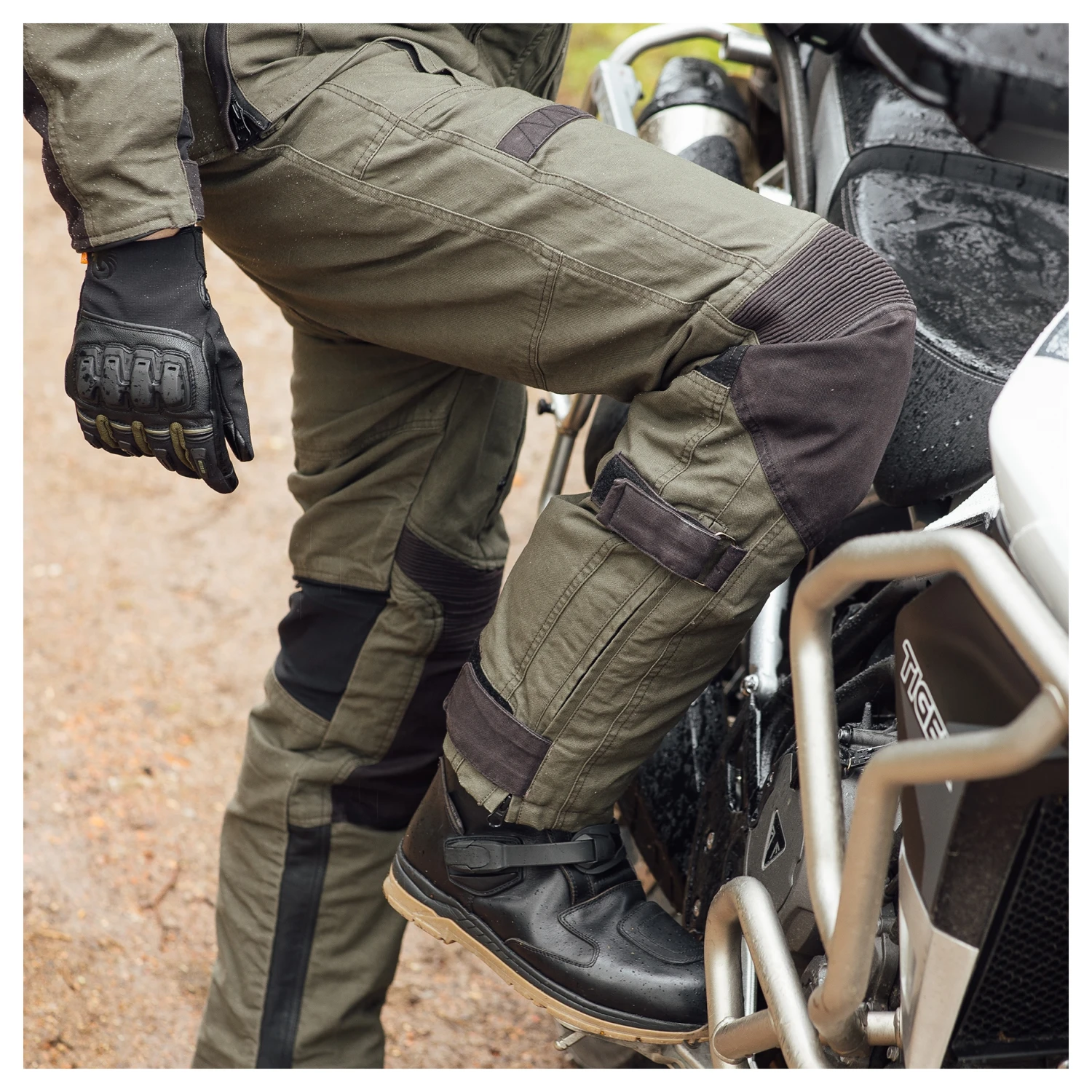 The Mahala Pro D3O Explorer Pants offer 3-in-1 versatility, durability and protection while incorporating the signature Merlin styling using only the best materials and components. Interchangeable waterproof and thermal liners prepare you for wet and cold conditions. If you are going for a summer scoot you can strip out all the liners and pin back the large thigh vents for ventilation. The Merlin-exclusive Cordura cotton has a water-repellant finish to keep you dry whenever you ride. D3O armor on the hips and knees protect you in the event of an impact so you can ride with confidence. The Mahala Pro D3O Explorer Pants are right at home in Merlin’s Explorer Collection, stylishly designed to complement the rise in accessible, do-it-all motorcycles and the riders looking for feature rich gear to keep them safe no matter where the ride takes them.