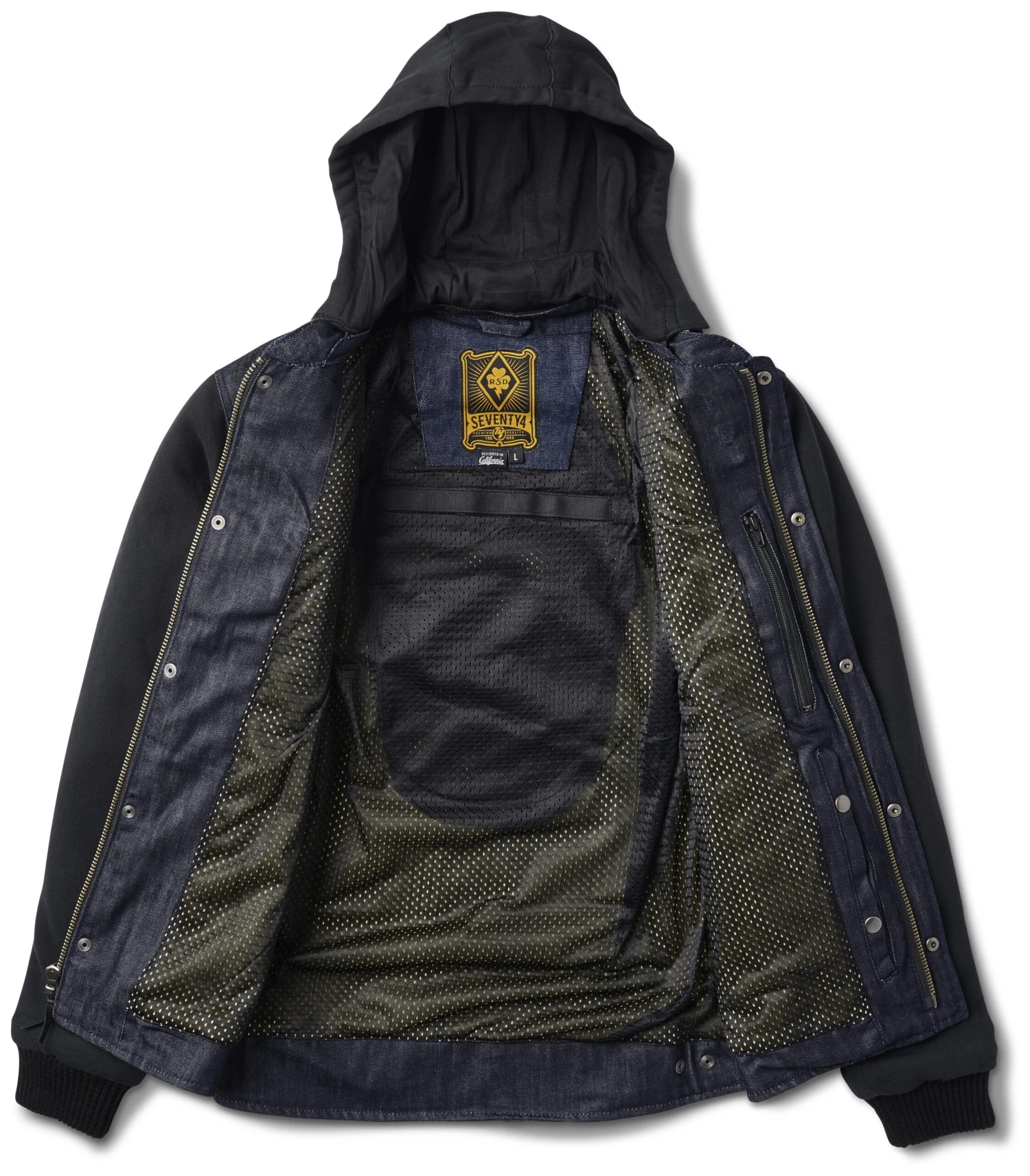- Denim main body with aramid lining