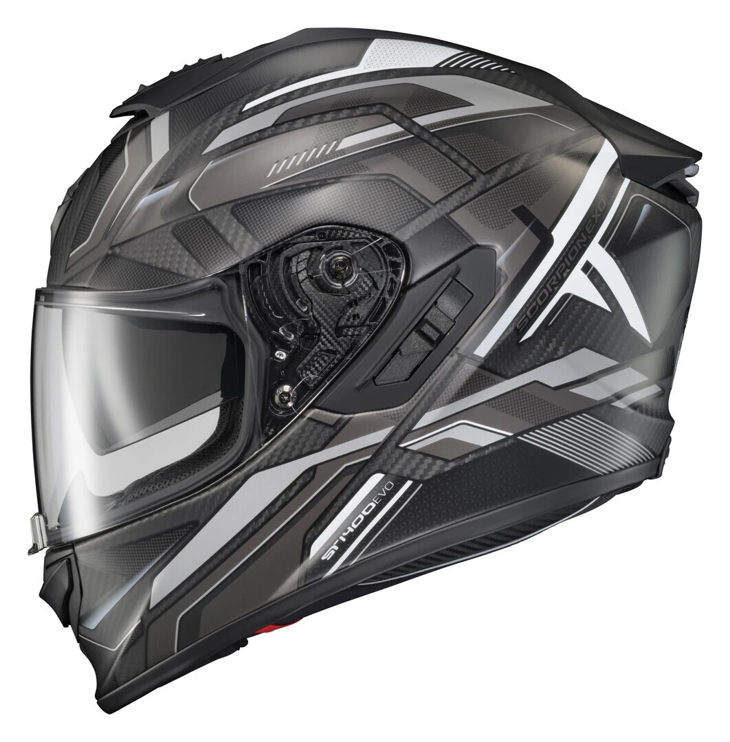 The EXO-ST1400 helmet combines advanced engineering, manufacturing, and materials in a sleek aerodynamic design, making it one of the lightest in its class at 1,383 grams (3.05 lbs). It features an integrated SpeedView® Sun Visor, an AirFit® custom inflation system, Comm-Ready convenience, and Aero-Tuned Ventilation for versatile and comfortable riding.