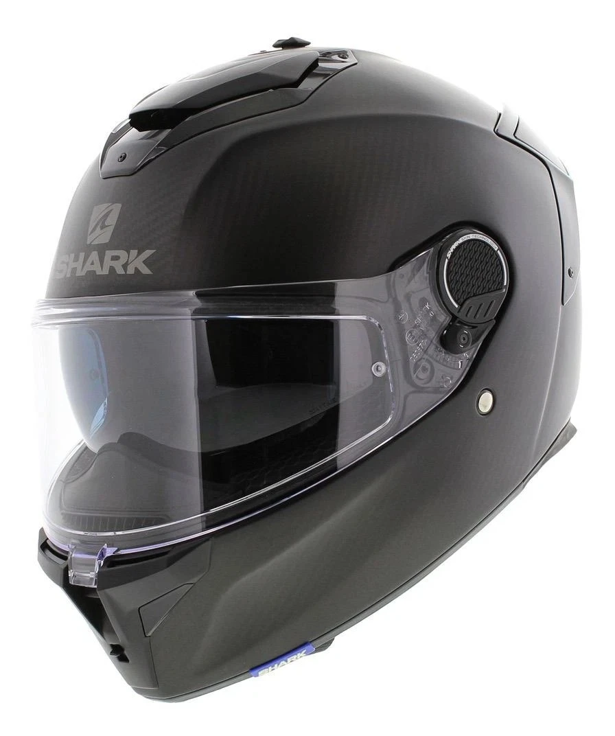 The Shark Spartan GT Carbon Skin Helmet is a fiber composite full-face helmet with all the upgrades. A multiaxial fiberglass shell combined with carbon fiber uses a multi-density EPS for full protection and an emergency removal cheek pad system that allows quick release of the helmet interior in case things go south. A Pinlock Max Vision lens is included in the box in order to keep helmets fog free no matter the conditions outside. Two air inlets and two air extractors with on/off switch allow for personalized ventilation ensuring just the right amount of air enters the helmet to cool riders down. The Spartan GT Helmet also allows easy install for Sharktooth intercom system.