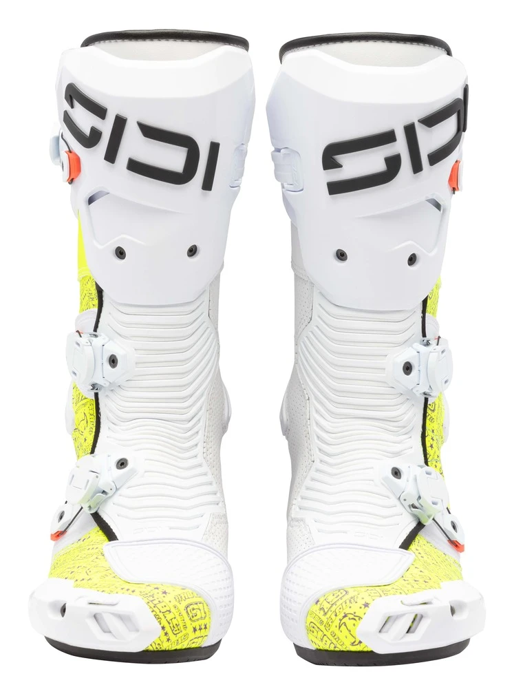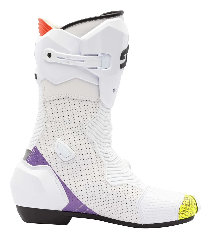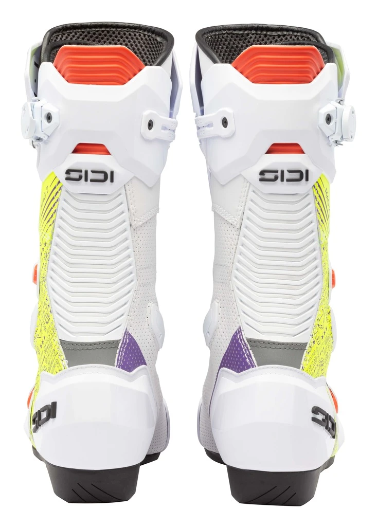 Shielded for impact and sculpted for feel, the Mag 2 Air boots from SIDI were shaped by MotoGP for peak performance on the track. Arched front and rear bellows provide lasting flexibility within a tough structure, giving you the freedom to move and focus to win. The Mag 2 boots’ aerodynamic design is complemented by thoughtfully placed external protectors, which reduce tumble risk and absorb impact without restricting movement. The NUUN 002M dial system locks in a 3-point fit for a strong hold and is adjustable on the fly, making it a clear winner in both safety and comfort when compared to a single zipper closure. With a ventilated sole and race-tuned control, the Mag 2 is made to push limits, corner harder and ride faster.
