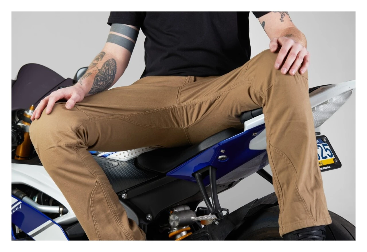 Mile after mile, riders appreciate the robust, triple-stitched construction, five pocket design, and subtle moto looks. A diamond-shaped pants gusset, along with the addition of spandex, give the Mission Cargos bike-friendly ergonomics on everything from sport bikes to feet-out cruisers.