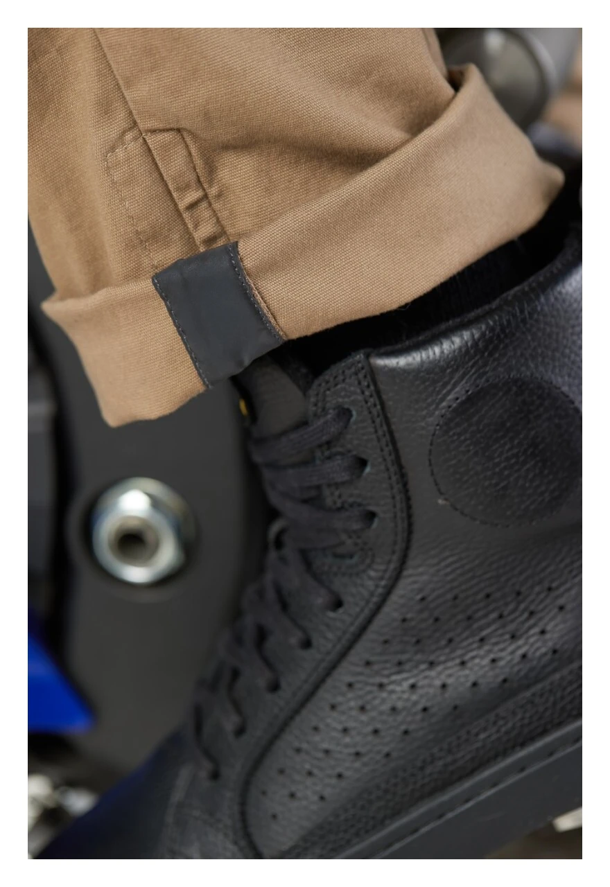 The main construction of the Mission Cargos is a blend of 97% cotton with 3% spandex added for stretch and comfort. Aramid knit reinforcements line the impact areas to protect you against abrasion. To counter impact, AXIAL brand AX2 knee armor is included and rated to CE Level 2. Pop the knee armor out easily when you reach your destination via externally accessed armor pockets.
