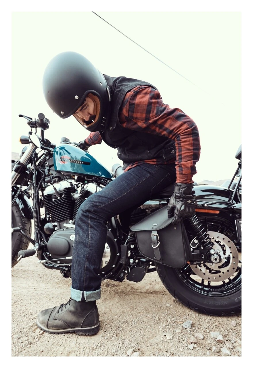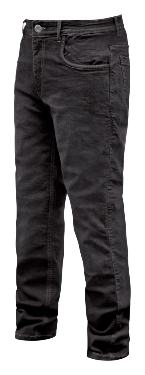 The Street & Steel Oakland Jeans are a pair of classic five-pocket jeans designed for the moto enthusiast. The traditional design uses a denim blend with elastane for a touch of stretch and added range of motion. The tailoring straddles the line between boot cut and straight cut to reduce snags and buffeting when on the bike. On the inside of the Oakland Jeans, aramid reinforcement lines the seat, hips and knees. This heat- and tear-resistant fabric protects from abrasion as CE knee armor inserts protect from impact.