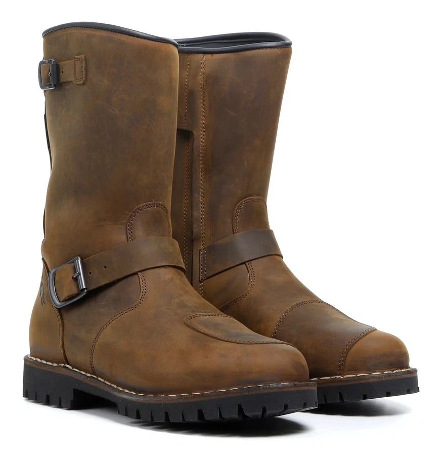 If you have classic taste, the TCX Fuel Waterproof Boots are sure to stoke your fire. Engineer boots were originally designed to have a single piece of leather on the forefoot with minimal exposed seams to protect the engineer’s feet from rogue hot coals. In the construction of the Fuel Boots, TCX recognized that this still-valid design has a different utility to the modern motorcyclist – the handsomely finished full grain leather upper is backed with a full waterproof lining to repel any sort of weather, water or grime the road throws at you. The TCX Fuel Boots are loaded with all the modern moto niceties like reinforced leather shift pads, medial and lateral malleolus discs, toe and heel counter and a grippy lug sole. With a pair of TCX Fuel WP Boots in your closet, you’ll want to fuel up before every ride.