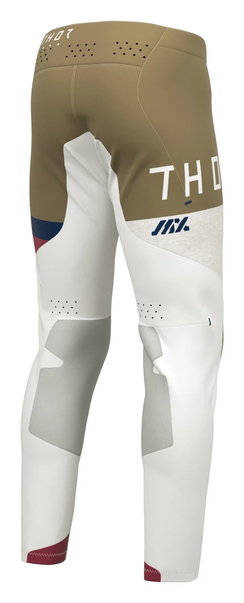 Thor Sportmode MX Pants put a strong emphasis on mobility, stretch and ventilation. Pants are cut with an athletic fit, using taped interior sewn seams and 4-way stretch poly / spandex In-Motion chassis construction. The minimalist approach results in a performance-oriented / race style pant that is low in weight and sporting a unique minimalist style, but is still durable enough for regular, non-competition riding.